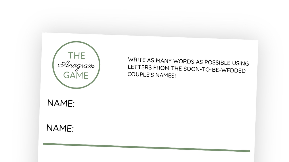 Write the two names of the soon-to-be-wedded couple and let the guest try to form as many words as possible using only those letters.