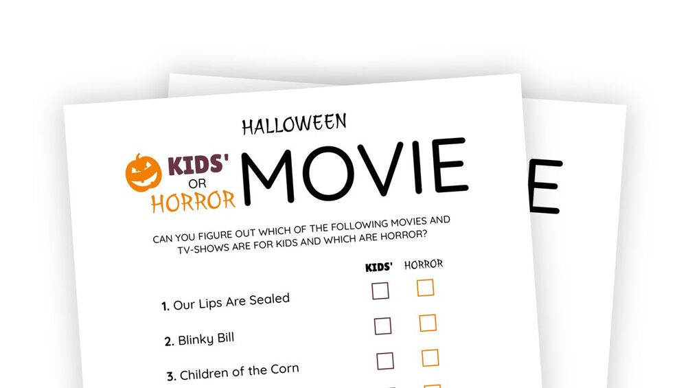 Printable for playing the Halloween game "Kids' or Horror Movie"