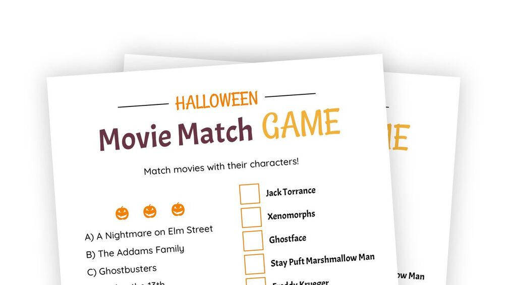Let's match up movies with their characters! Staying true to the Halloween theme, this game focuses on scary movies, nasty characters, or the supernatural. The left side of the printable lists movies, and the right side characters from those movies. The task for the players is simply to match them up by writing the movie's letter next to the character's name.